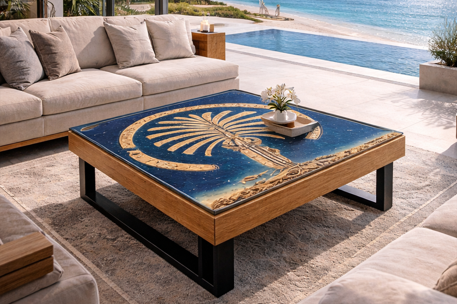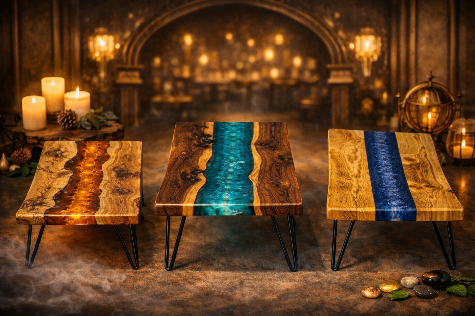 The visuals presented on this website are AI-curated artistic renderings of our handcrafted resin tables. They serve as refined conceptual showcases, designed to illustrate the creative vision, aesthetic direction, and bespoke possibilities of our collections.